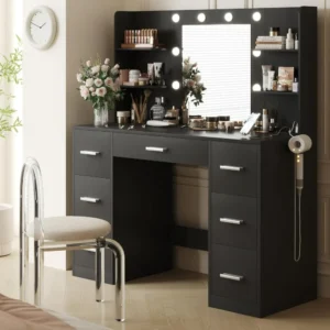 $109.00 – $227.00Price range: $109.00 through $227.00Vanity Desk with Mirror LED Lights and Power Outlet Makeup Vanity Table with 7 Drawers and 6 Storage Shelves Dressing Table