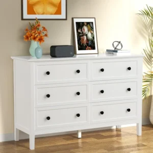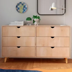Wide 6-Drawer Dresser –Double Wooden Cabinet – Versatile Furniture Nursery, Living & Bedroom, Double Wooden Dresser Cabinet