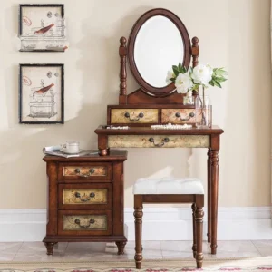Vintage Makeup Chair Dressing Table Glamour Luxury Elegant Storage Dressing Table Set Bedroom Classic Coiffeuse Home Furniture
