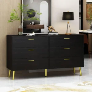 Black Dresser, Modern 6-Drawer Dresser for Bedroom with Gold Handles, Wide Chest of Drawers for Living Room