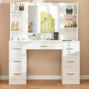 $408.00 – $418.00Price range: $408.00 through $418.00Large Vanity Desk with 3 Color Touch Screen Dimming Mirror, Vanity Desk with Charging Station,Modern Retractable Makeup Dressing