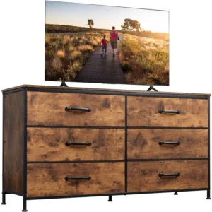 Wide Dresser with 6 Drawers, TV Stand for 50" TV, Entertainment Center with Metal Frame, Wooden Top, Fabric Storage Dresser for