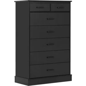 Black Dresser for Bedroom, Tall 7 Drawer Dresser with Sturdy Base, Wood Storage Tower Clothes Organizer, Large Storage Cabinet