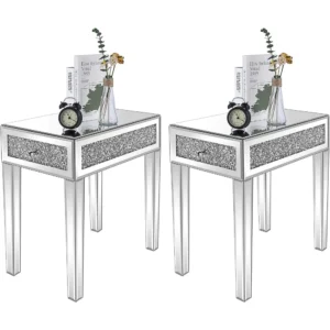 $454.00 – $582.00Price range: $454.00 through $582.00Mirrored Nightstand set of 2, Narrow Side Table with Drawer Glass Accent Table, Silver End Table, Beside Table