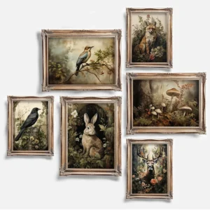 Vintage Dark Academia Aesthetic Animal Rabbit Deer Crow Fox Posters Prints Canvas Painting Wall Art Pictures for Room Home Decor