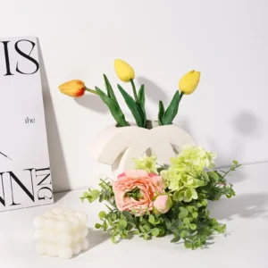 Cream Style Nordic Home Entrance Decoration and Ornaments Light Luxury Ceramic Vase Irregular Floral Vase