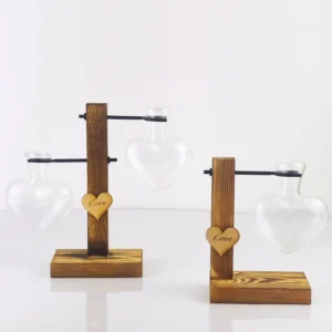 Creative Love Heart Shape Hydroponic Flower Vase Wood Frame Glass Vase Plant Flower Pot Home Decoration Tabletop Ornament