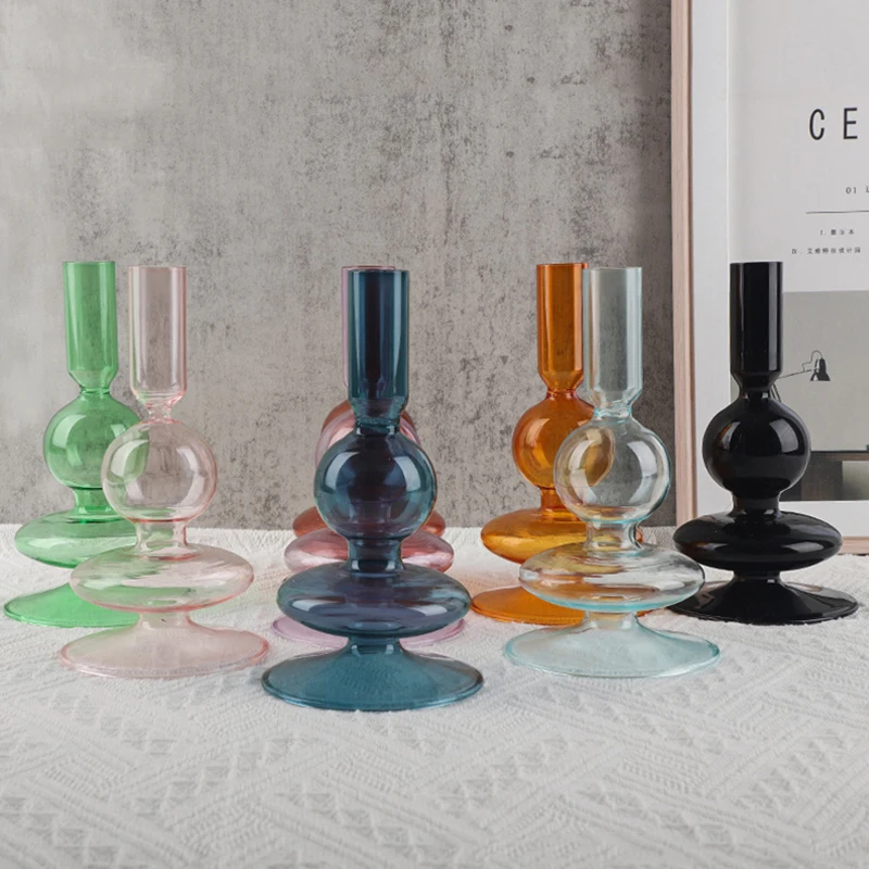 New Colorful Glass Flower Vase Creative Decorative Candle Holders Wedding Decoration Crystal Candlestick Gift Table Home Decor