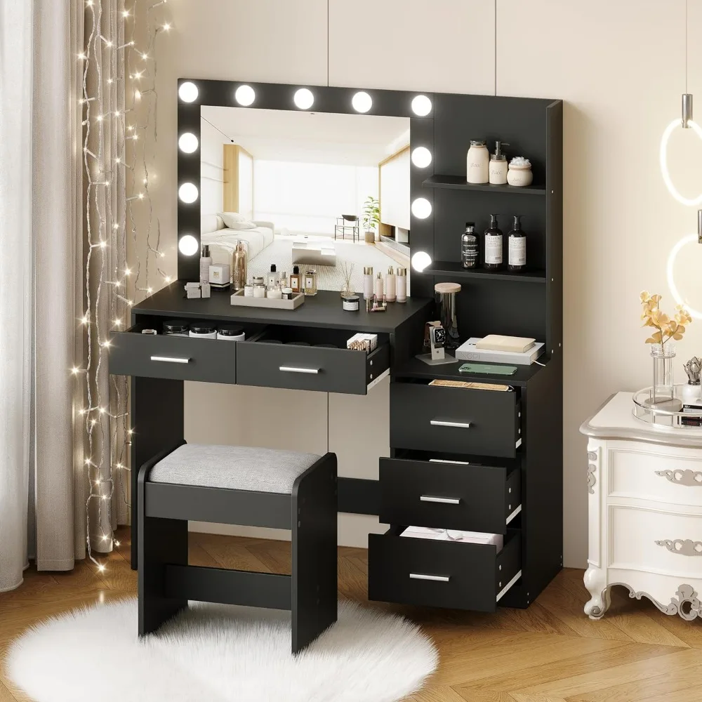 • Super Large Storage Capacity: With 5 Drawers, our vanities have ample storage for your makeup and hair tools, Hide your cosmetics, skin care products and delicate ornaments in plenty of drawers and shelving options